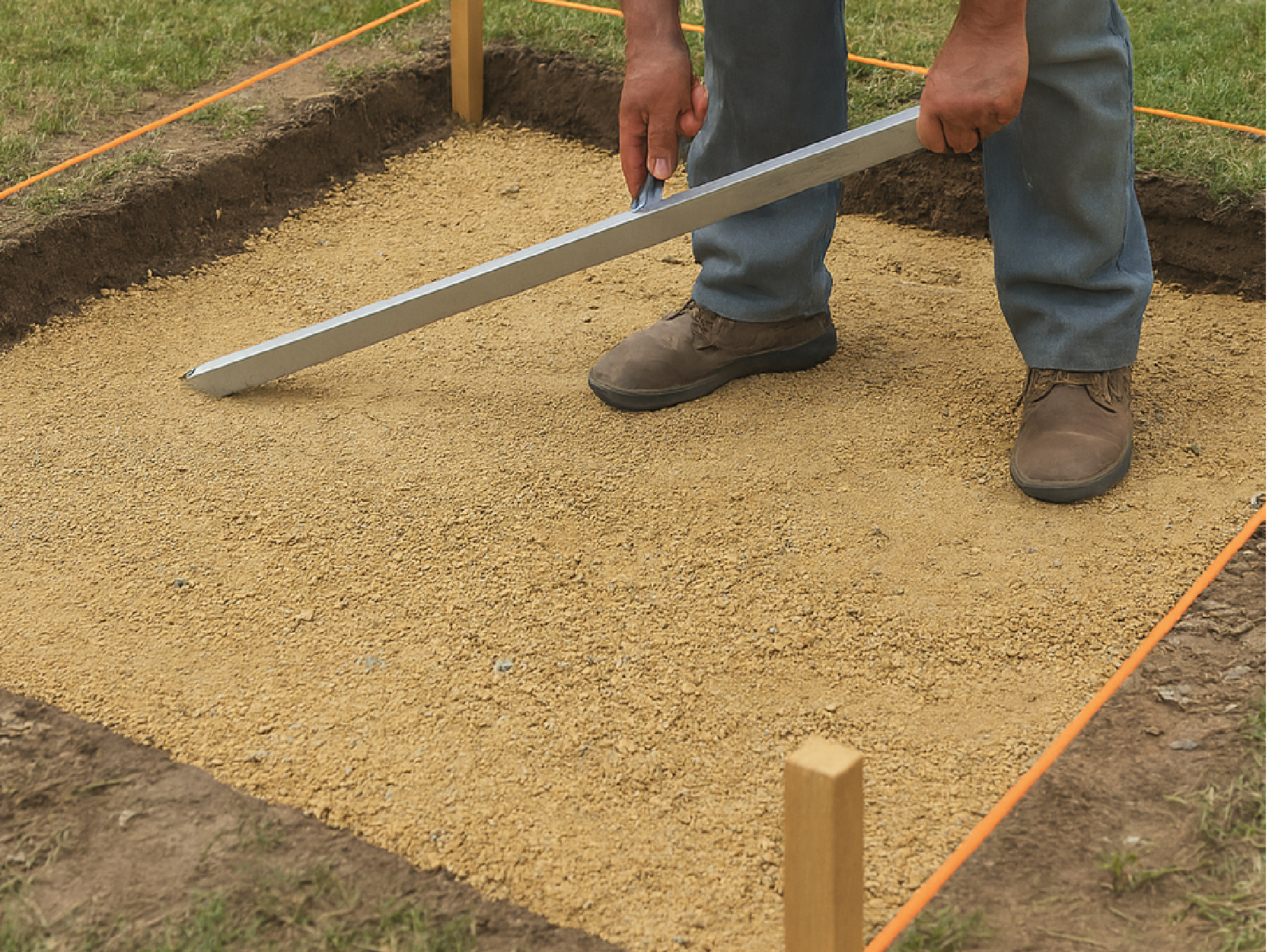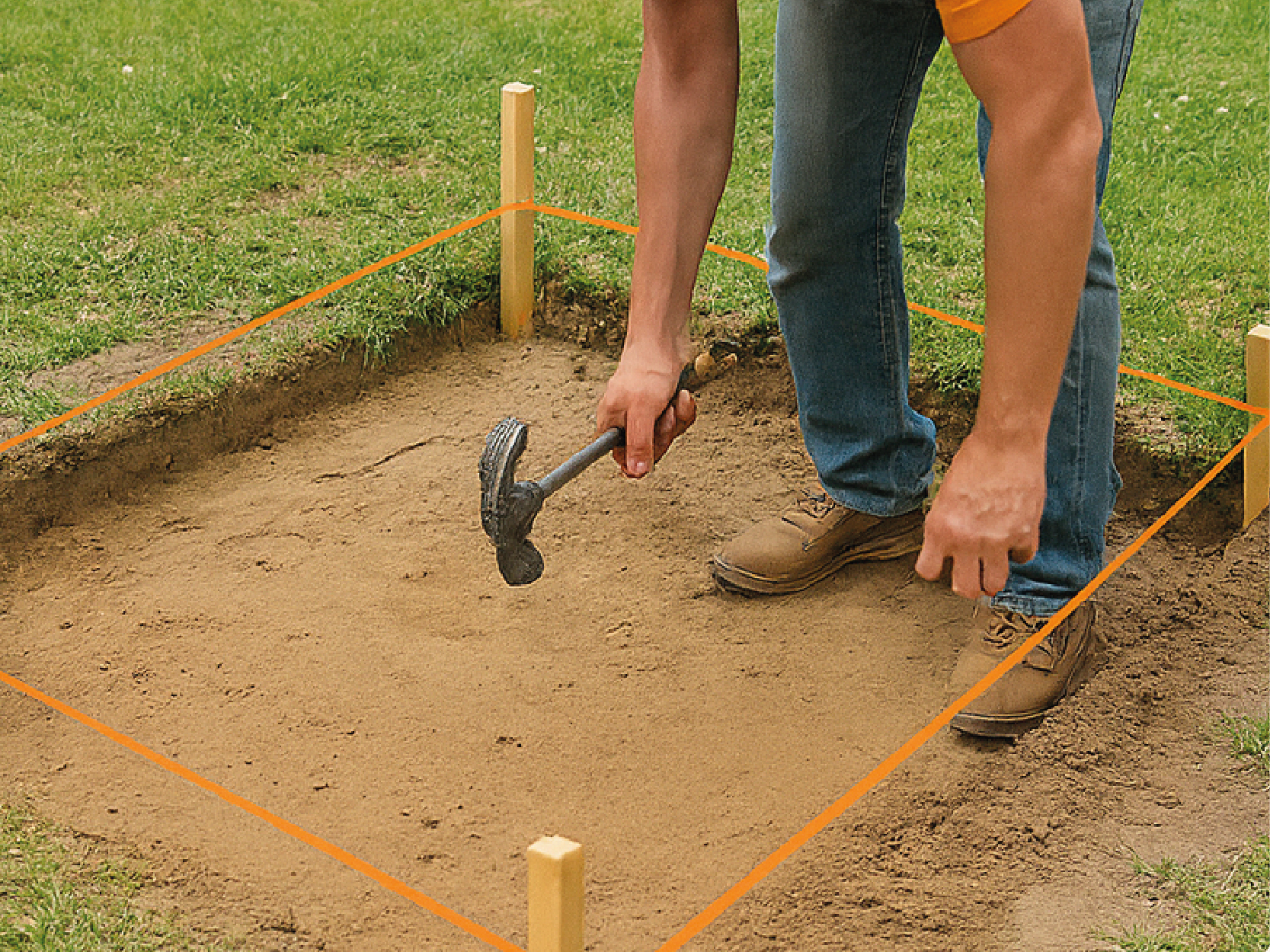 Compactez la terre pour obtenir un fond stable, uniforme et sans irrégularité.