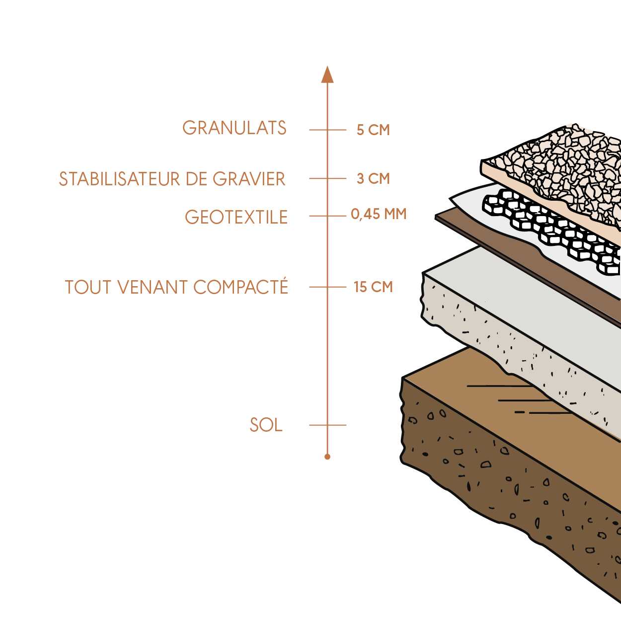 Décaissez le sol sur 15 à 30 cm selon l’usage (piéton, voiture…).