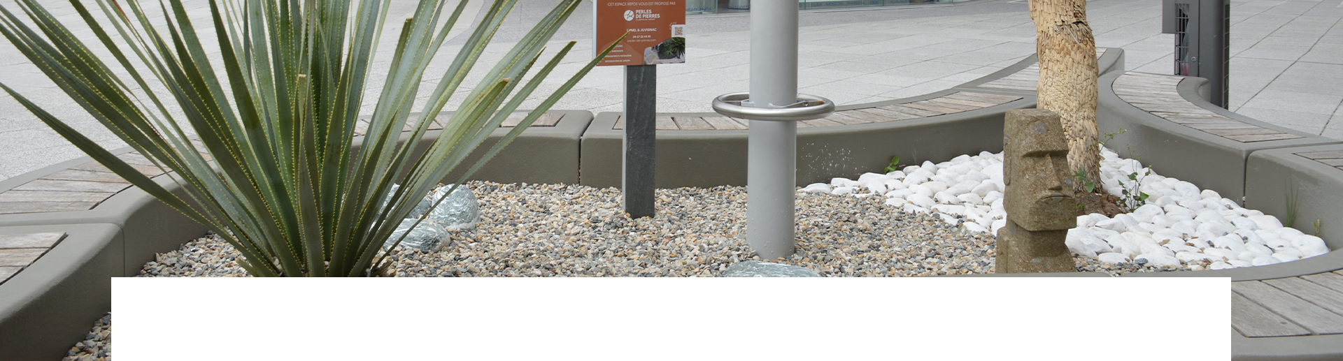 Notre centre ludico-commercial étant à ciel ouvert, il subit en permanence les aléas climatiques : pluie, vent marin, soleil intense… Il est difficile pour nous de ponctuer notre établissement avec des décorations puisque peu de décors survivent à ces aléas. Nous avons donc imaginé donner du « pep’s » à notre décoration avec de beaux matériaux résistants en pierre naturelle.