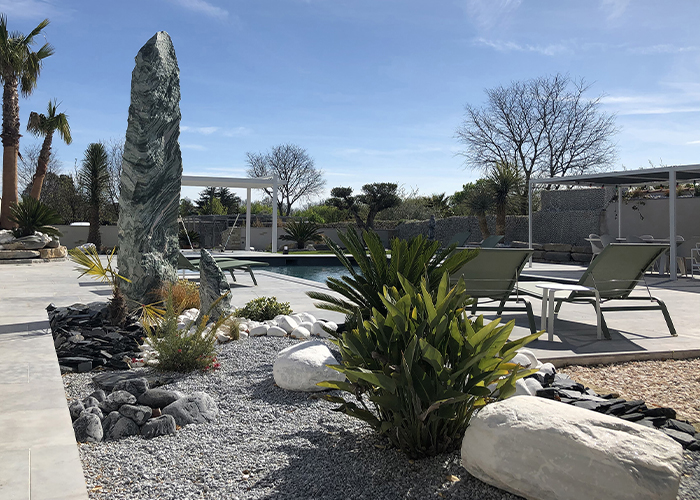 Chez Perles de Pierres, nous proposons une large gamme de granulats, de monolithes et d'éléments décoratifs uniques tels que des têtes de Moaï, parfaits pour donner vie à vos projets d’aménagement extérieur. Découvrez les principales tendances 2025 en aménagement paysager et comment nos produits peuvent transformer votre jardin en un véritable havre de paix.