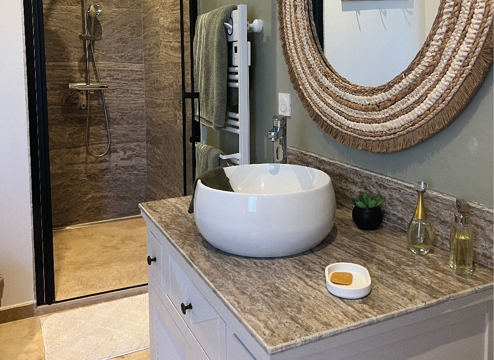 L'une des caractéristiques les plus séduisantes du travertin est sa beauté naturelle et sa polyvalence esthétique. Disponible dans une gamme de couleurs allant des tons chauds de beige et de crème aux nuances plus profondes de brun et de gris, le travertin s'adapte à une variété de styles de design, qu'ils soient traditionnels, rustiques ou contemporains. Que vous cherchiez à créer une ambiance chaleureuse et accueillante dans un salon ou une cuisine, ou à ajouter une touche d'élégance à une salle de bain ou un hall d'entrée, le travertin peut être adapté pour répondre à vos besoins esthétiques.